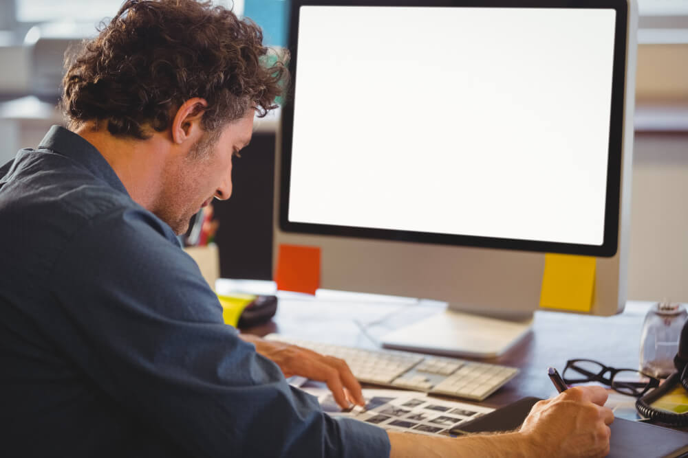 Personne regardant un écran d'ordinateur avec le site Infogreffe affiché, et une expression d'incompréhension.
